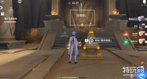 3、初始位置在中间。将三处古代符文激活后,即可回到初始房间开启电梯上楼,进入最终试炼完成挑战。