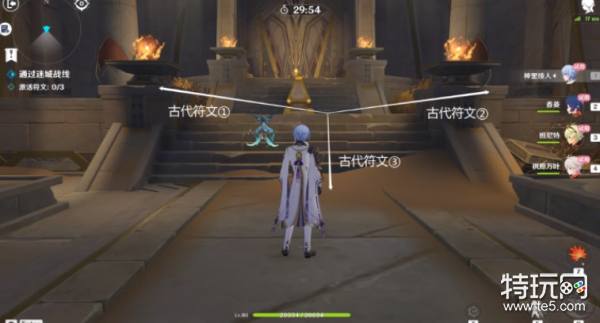 4、进入挑战后,可以前往不同的方向激活古代符文,一共有3个。