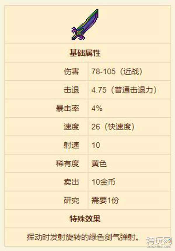 3、武器介绍:原版永夜刃是一件近战武器,同时也是永夜刃的升级版本,武器的外观变得更大而且攻速也非常快,挥动时还会发射绿色的剑气,伤害非常高。