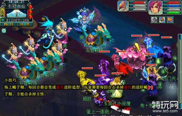 小贴士∶场上蝎子精,每回合都会变成蓝色进阶造型。玩家需要每回合击杀掉蓝色的进阶蝎子精。方能击杀掉主怪。