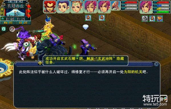 玩家可以在〔46,25〕找到一个玄武雕塑,点击触发玄武地阵隐藏任务。