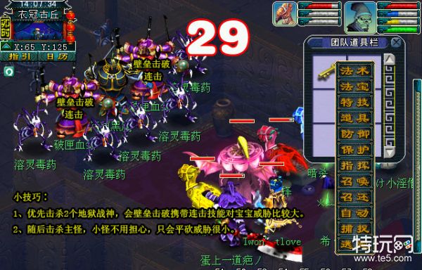 1、优先击杀2个地狱战神,怪物血量较少,伤害较高。保证宝宝生存。