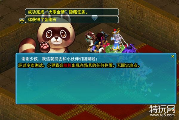 玩家可以在〔101,281〕找到一只小狸猫,玩家帮它寻找另外2个同伴。