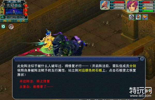 在〔162,129〕找到另外一个玄武雕塑,点击后就会有一个有趣的小游戏〔单人任务〕。