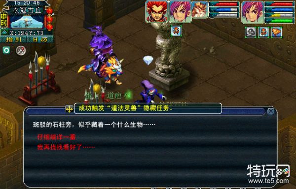 玩家可以在〔194,73〕找到一根蟠龙柱,点击触发道法灵兽隐藏任务。