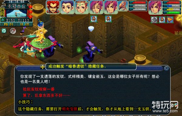 玩家可以在〔51,131〕的地面上找到一支玉钗。触发隐藏任务暗香遗钗。