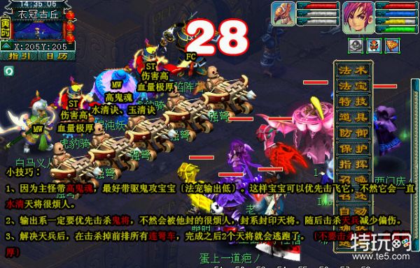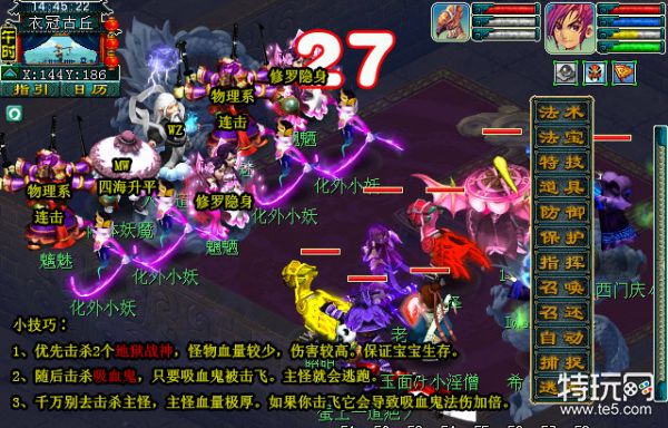2、输出系一定要优先击杀鬼将,不然会被他封的很烦人,封系封印天将。随后击杀天兵减少偏伤。
