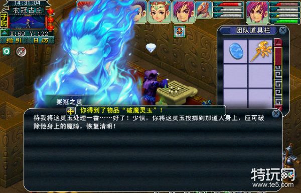 回到冠冕之灵处,得到破魔灵玉。回去找神秘道人发生战斗。