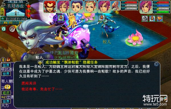 玩家可以在〔206,268〕找到一个鲛人,对话后发生战斗。