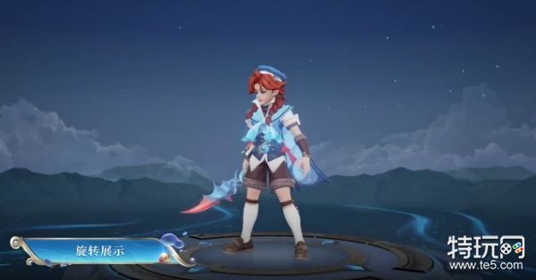 这次的桑启戴着的可是碧色宝石的海军帽子,穿的是非常可爱的海蓝色的休闲衣,我们可以发现皮肤的细节做的很到位。裤脚和袜子处都还有十分华丽的金属的纽扣,有着极强的复古的感觉。而且注意看腰间的装饰还是海螺。服装是十分清爽的海蓝色,自身的武器匕首也是结合了海浪的轮廓,充满着奇幻的感觉。整体的装扮还是以海洋的水手风格为主,褐红色的头发。灰色的海狮短裤加上一个小皮鞋。武器是一个巨型的海螺,建模看上去还是很不错的。