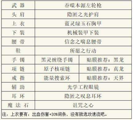 推荐理由:上衣要有出血伤害+30的词条,没有就选择攻速流