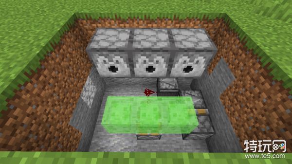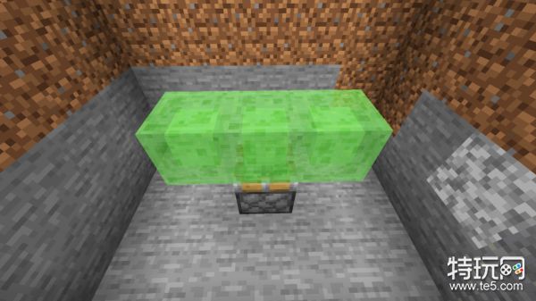在坑中放置一个粘性活塞,并在活塞上方放三个粘液块