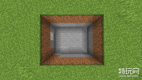 首先找一个空旷的地方,挖一个长5格,宽4格,深4格的坑