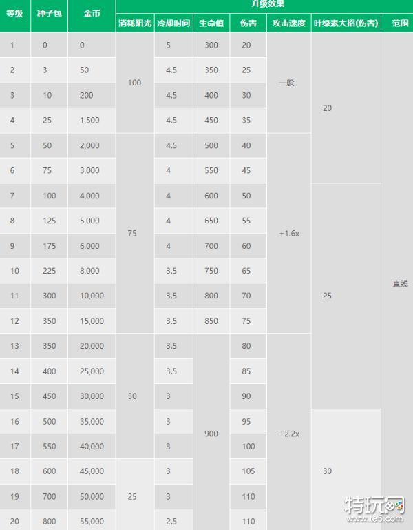 给予植物食物后,豌豆射手现在会射出三颗巨型豌豆,每发造成 400 点伤害,总共造成 1200 点伤害。