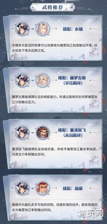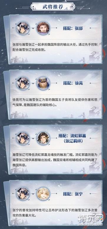 以上就是今天给小伙伴们带来的三国志幻想大陆瀚雪张辽搭配推荐,希望对大家有所帮助。更多相关内容请关注特玩网三国志幻想大陆专区。