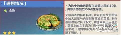 4、「理想情况」的料理效果跟原料理差不多,都是为角色提供血量回复,不过回血量要比原料理更多一些。