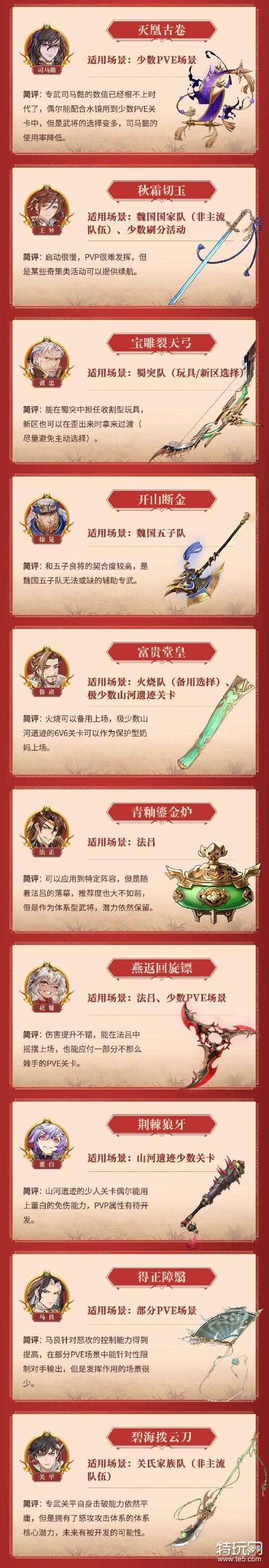 4、PVP向的专武推荐指数因人而异,根据主力阵容不同存在很大差距,因此即使是单一阵容必备的专武也不会有特别高的评分,但是你仍然必须拥有它才能玩特定阵容。
