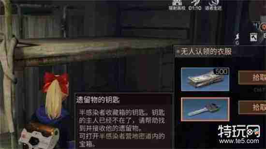 3、随后根据线索来到生活区,找到可以的物资,发现无人认领的衣服,搜索可以得到钥匙。