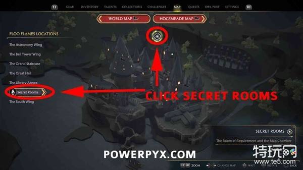 传送方法:打开霍格沃茨地图,在左侧单击“密室”,然后单击要快速前往的密室。或者,单击霍格沃茨地图屏幕北部的太阳图标。