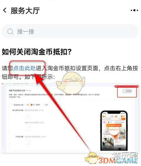 2、搜索找到并点击“如何关闭淘金币抵扣”。