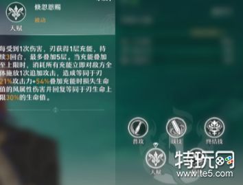 【倏忽恩赐】:刃的核心,叠满五层就会释放追击效果,输出不低的同时还能回血,刃的输出和坦度双重保障。