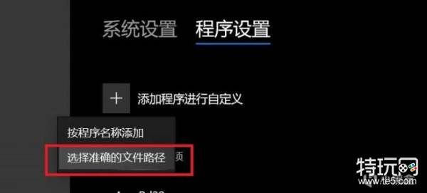 3. 然后点击“添加程序自定义“--》点击”选择准确的文件路径