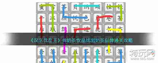 奶茶饮品找出奶茶品牌怎么过?汉字找茬王是一款火热好玩的文字解谜游戏,在游戏中丰富类型的谜题都可以挑战一番,在解谜中你可以享受到烧脑解谜的乐趣,同时也能学习到有趣的文字知识,拓展你的视野,关卡谜题中经常会融合许多有趣的元素,让你的解谜充满新鲜感,感受当下流行的元素与热梗,奶茶饮品找出奶茶品牌是近期推出的找词关卡,你可以从网格中连线出所有的奶茶品牌,大部分的品牌都是非常常见,想必肯定难不到大家,详细的汉字找茬王找奶茶饮品找出奶茶品牌通关攻略下面由小编来为大家带来,有需要就一起看看吧!