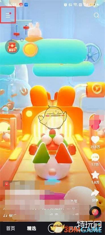 1、首先打开快手极速版,之后点击左上角的【三横】图标;