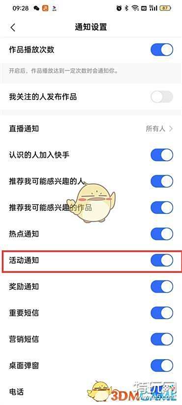 4、然后在通知设置的页面中关闭【活动通知】即可。