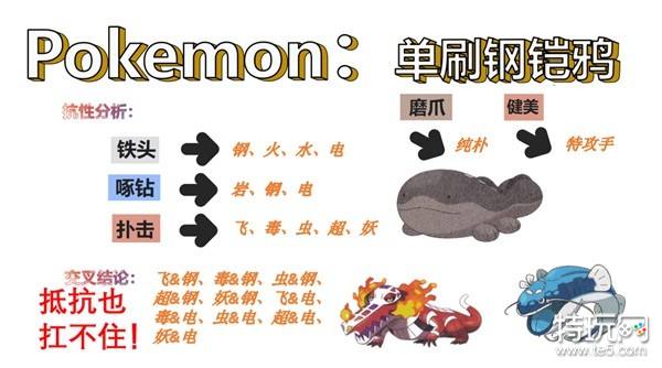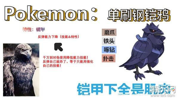这个特性就跟之前那些平平无奇的特性不一样,作为钢铠鸦的梦特,镜甲非常强力,导致我们在太晶团战中无法使用刺耳声、假哭等降低能力变化的技能,因此哪怕组队也不好做到叠BUFF之后一击秒杀钢铠鸦。