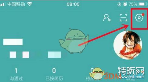 1、打开BOSS直聘我的页面,点击右上方的设置图标。