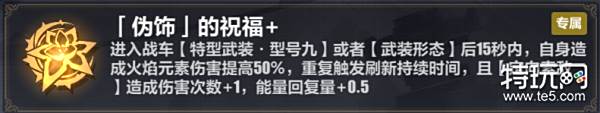 「伪饰」:开局首选。【定向索敌】造成伤害次数+1(可以简单理解为造成双倍伤害),而且还有50%火伤加成,同样属于首选位置。
