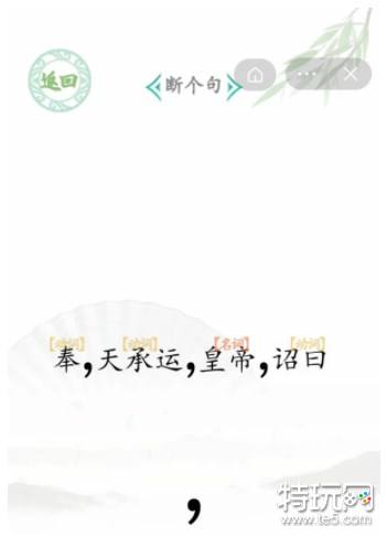 第三句,奉天承运皇帝诏曰,断法如下图: