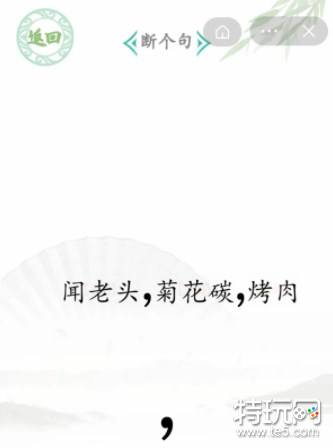第一句,闻老头菊花滩烤肉,断法如下图:
