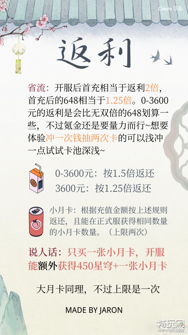 2、三测期间0-3600元的返利是会比无双倍的648划算一些,不过氪金还是要量力而行~