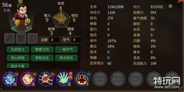 但是五维很好看,很容易满体质满臂力,自带两个紫色的棍法,请教可以获得其中一个,紫色内功入队可以获得,效果看着挺给力的,前期如果不走风的路线可以先拿来过渡。武道方面火雷点满,他们一家明显都脾气比较冲,后续版本就算开了释法寺可能会有更进一步,但是还是先给他几个自带天赋吧!