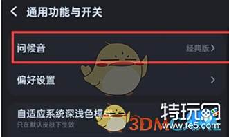 4、点击打开通用功能与开关选项之后,找到并点击问候音选项;