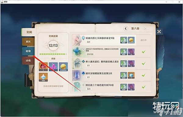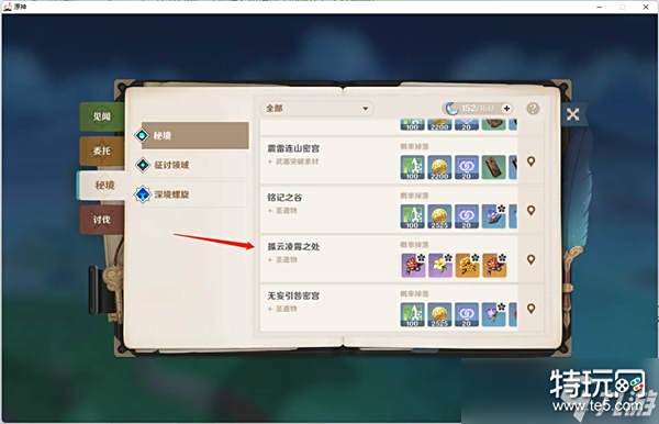 1、 首先我们进入到游戏中去点击里面的任务面板,在界面的左边去点击秘境栏目;