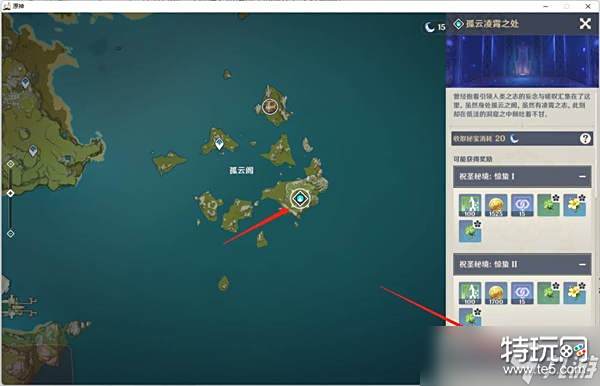 5、 最后我们可以看到这个秘境在孤云阁的岛屿上面,传送过去就可以了。
