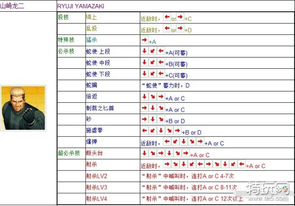 以上便是小编为大家带来的拳皇97山崎龙二出招表的所有内容了,希望可以帮助到大家更好的使用山崎龙二这个角色。