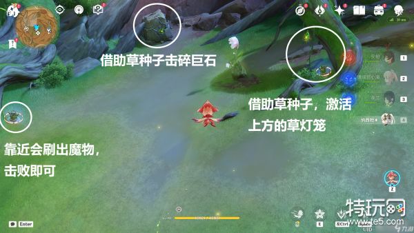 (3)来到标记位置,激活三个草方碑即可(草种子位于,我人所在的位置)