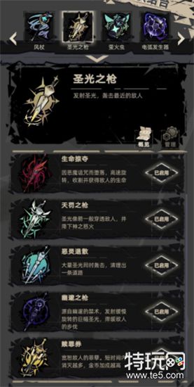 1、红枪:附带击退和吸血,推荐搭配聚合,可以攻击视野全部范围,搭配眩晕可以直接清场。