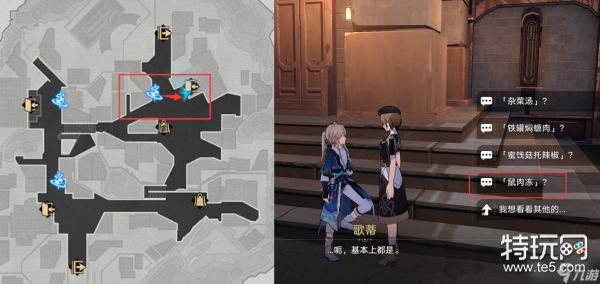 来到歌德大酒店,与门口的歌蒂对话。选择【我想和你聊聊】→【有什么菜式推荐嘛】→【鼠肉冻】,即可获得配方:难吃的炒饭和成就【不干不净,吃了没病】。