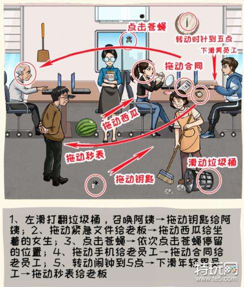 2、拖动紧急文件给老板拖动西瓜给坐着的女生;