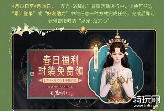暖春假日版本开启,假期活动速速安排: 【上线领《陆小凤传奇》联动贺笺】:双古龙IP联动夏季资料片定档6月30日,现登录游戏即可收藏《陆小凤传奇》联动限定贺笺,资料片开启之日可凭贺笺领取500绑点! 【好礼许愿送活动】4月26日至5月11日期间登录游戏并许愿,通过登录签到或邀请好友助力达到许愿值,可领取染发绘板、天涯令·四等星愿好礼! 【超级大侠闯关小游戏】4月28日起登录游戏参与超级大侠像素小游戏,化身像素大侠完成闯关,即可领取可爱动态表情、限定像素头像框、气泡框、绑定彩绘福袋等惊喜好礼! 【泼水节主题外观】泼水节主题普赠外观【浮光·浴梵心】现已上线,参与普赠活动邀请好友助力或累计签到3天,即可将金光闪闪的外观带回家! 【衣柜搭配功能追加】【衣柜搭配】界面新增快捷拍照功能,点击即可隐藏UI界面,随心分享美美造型和穿搭!