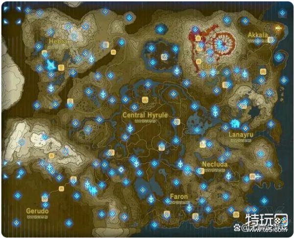 普通版塞尔达传说旷野之息游戏本体一共包含120个神庙,具体位置如下: