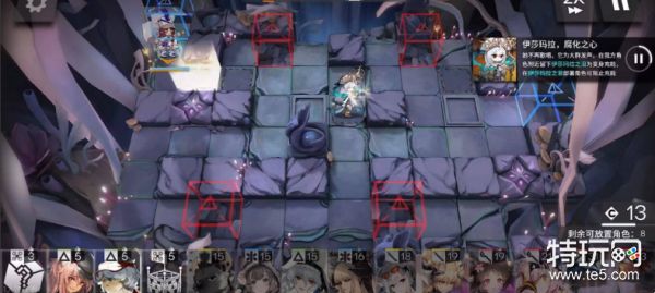 明日方舟伊莎玛拉的打法主要是规避发光地板给伊莎玛拉充能的机制,首先,先部署先锋干员快速回复部署费用。
