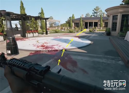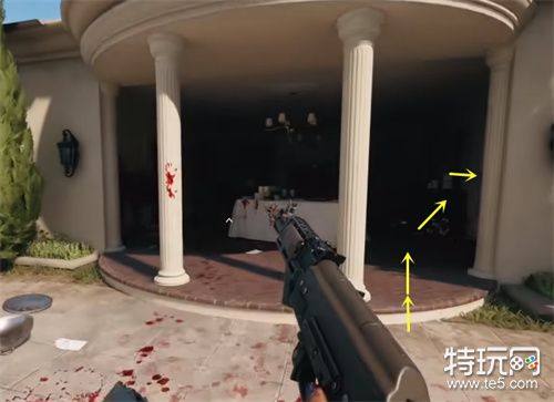 1、大家找到保险箱后,退出方向往图中方向走。