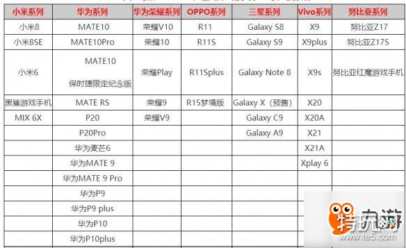 这里是部分部分支持设备名单,以下机型基本上是可以玩的,榜单仅供参考。没有在榜单上的建议开低配置进行游戏,只要达到官方配置(运行内存4G以上,安卓5.0版本以上)就可以了。