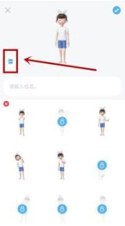 2、进入个性签名编辑也以后,可以看到很多的姿势,选择其中一款,当然更多的舞蹈动作是需要玩家在商店里购买的,点击左上角的【商店】标志